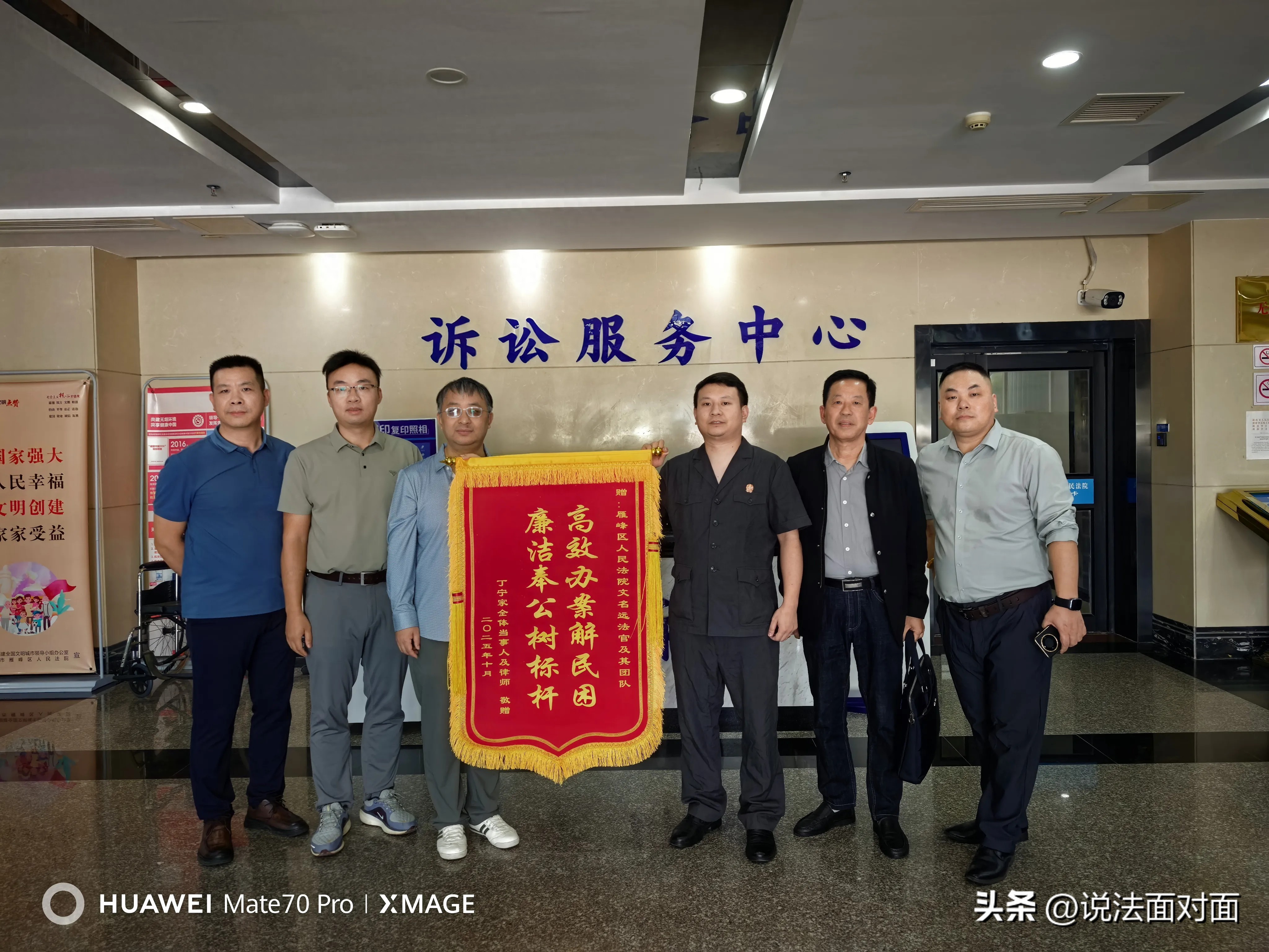 调解成功第五天,当事人及几位代理律师捧着一面鲜红锦旗来到雁峰区人民法院,“高效办案解民困,廉洁奉公树标杆” 十二个金黄大字格外醒目。年长的继承人双手递锦旗时感激道:“文法官,案子这么复杂,您三次调解没嫌麻烦,既把钱和债算得明明白白,又没让我们家散,您是真为老百姓办事!”一边的律师也补充:“少见您这样既讲法理又重人情的法官,每次都把当事人难处放在心上,不摆架子不谋私利,‘廉洁奉公’您受之无愧!” 文名远法官笑着回应:“这是我该做的,你们一家人好好的,比什么都强。”